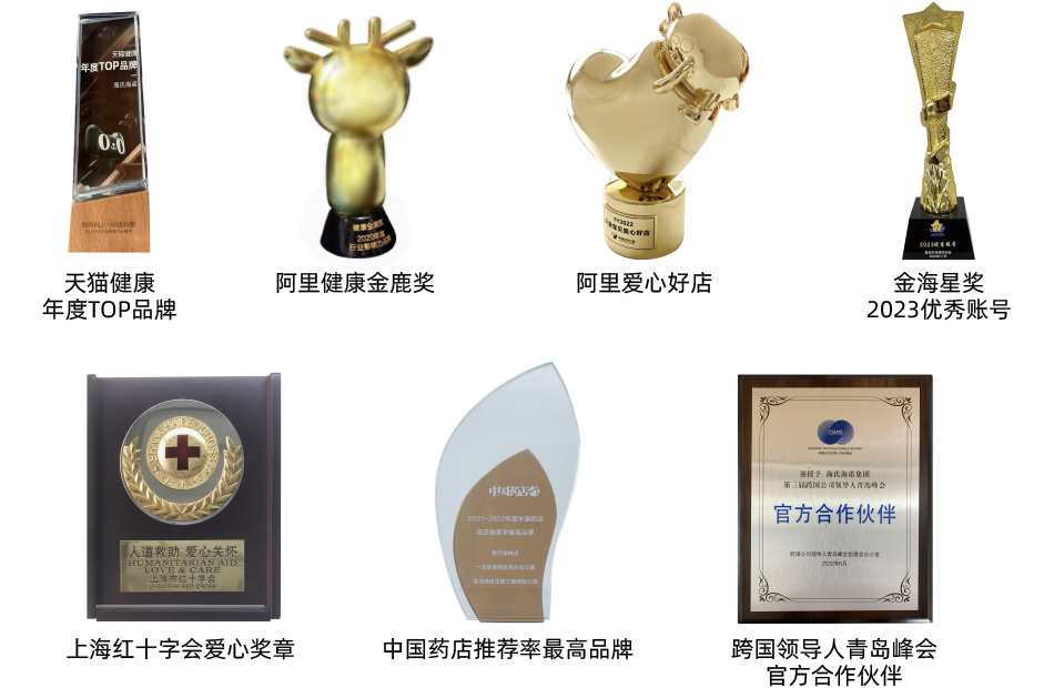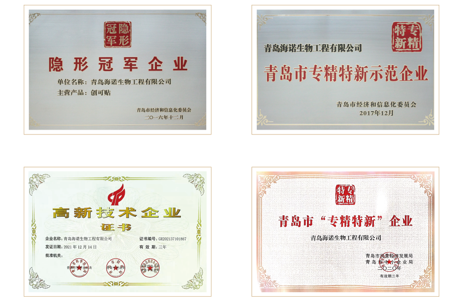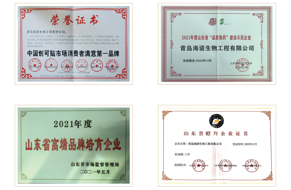 海氏海諾集團(tuán)先后獲得青島市守合同重信用企業(yè)、青島市優(yōu)秀民營企業(yè)、中國醫(yī)用敷料行業(yè)杰出品牌、中國優(yōu)秀民營企業(yè)、中國醫(yī)療器械行業(yè)最具創(chuàng)新活力競爭力前三強(qiáng)企業(yè)、中國馳名商標(biāo)、山東省高端品牌培育企業(yè)、山東省“品質(zhì)魯藥”建設(shè)示范企業(yè)、國家級(jí)“專精特新”小巨人等榮譽(yù)和獎(jiǎng)項(xiàng)。