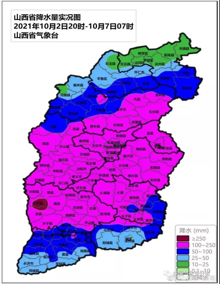 10月2日至7日,山西省出現大范圍強降水,降水量為15.4~285.2毫米,18個縣超過200毫米。受持續強降雨和上游來水影響,黃河山西段流量持續加大,太原市清徐縣烏馬河、汾河新絳段、呂梁市磁窯河汾陽演武段等多處出現險情。